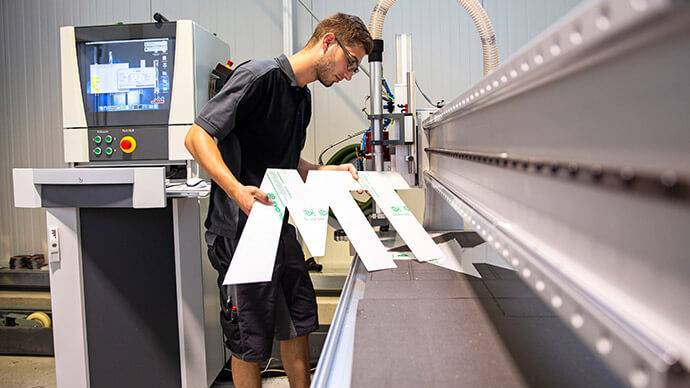 Mit unserer CNC-Flachbettfräse produzieren wir 3D Buchstaben und Logos. Wir fräsen die unterschiedlichsten Materialien wie Kunststoffe, Acryl, Aluverbund, Holz und vieles mehr.