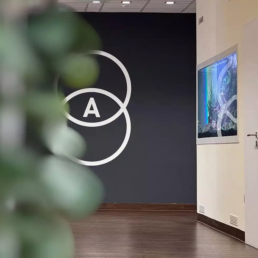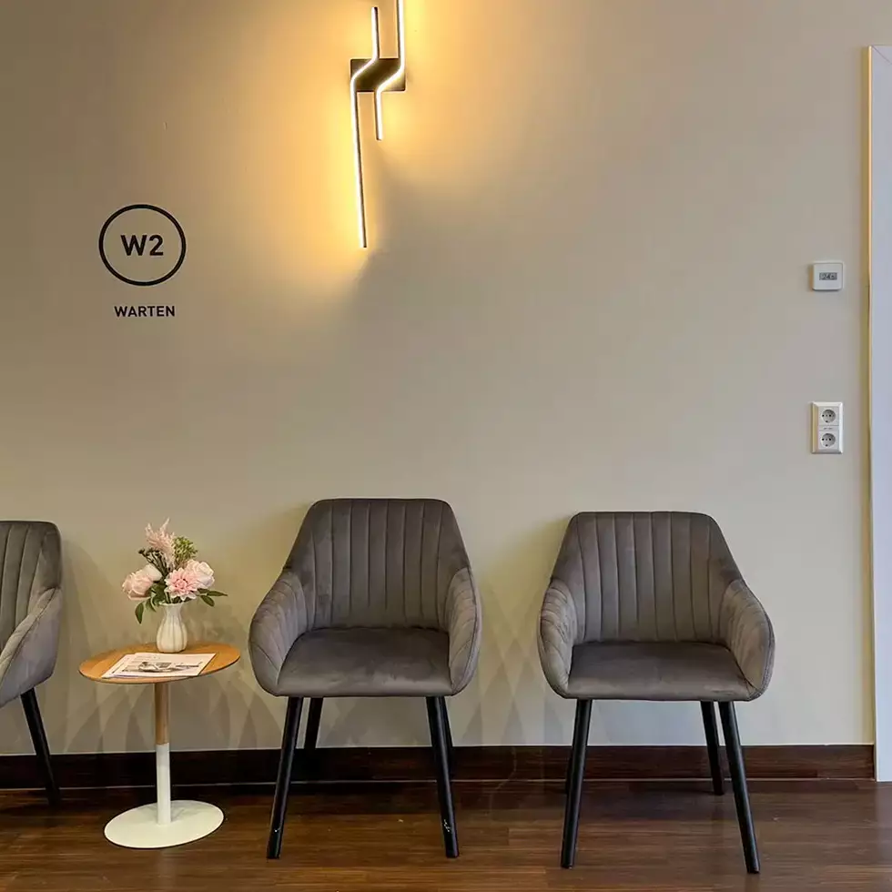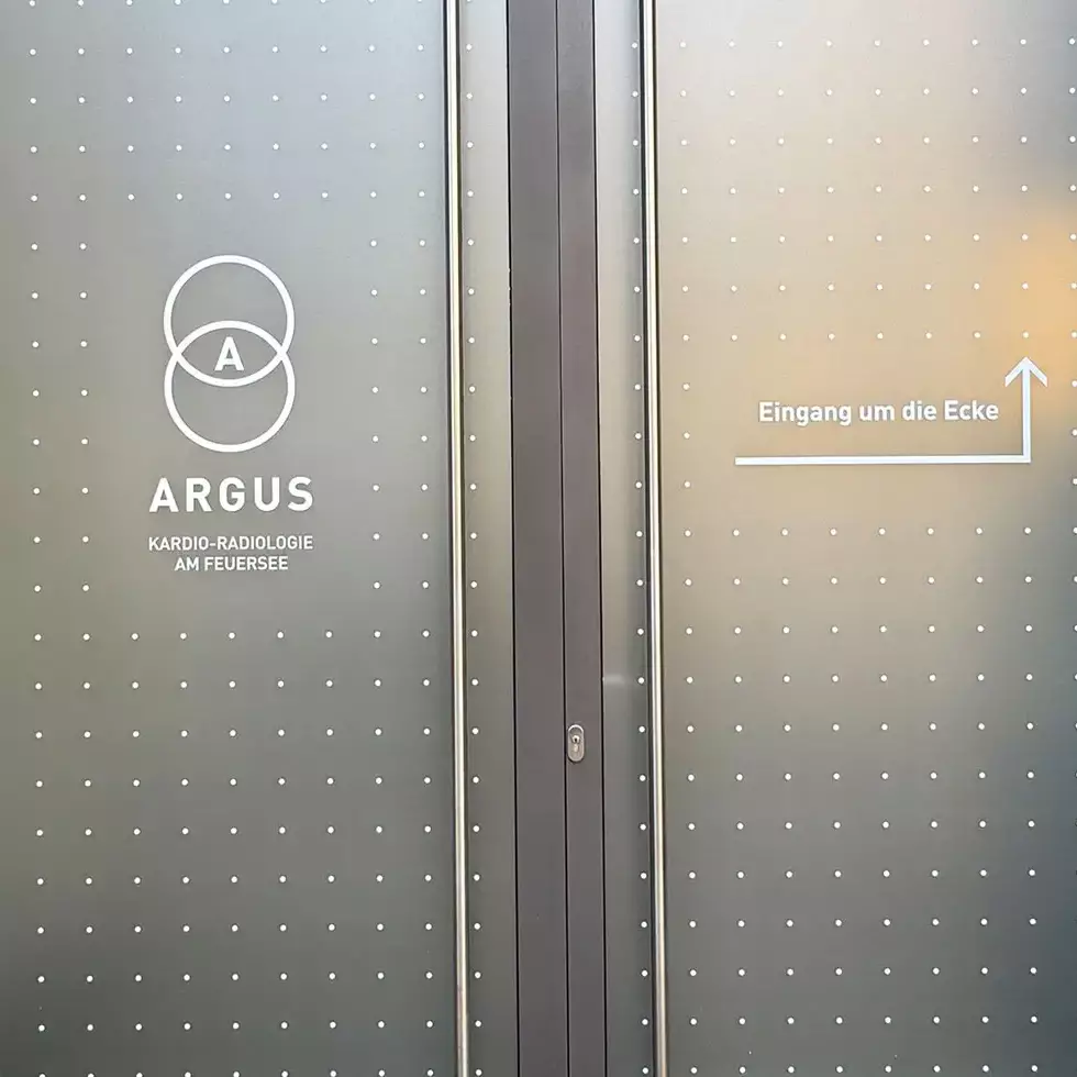 Für die Erneuerung der Praxis am Feuersee haben wir das Leitsystem in den Innenräumen sowie der Tiefgarage umgesetzt. Der moderne Empfangsbereich präsentiert sich mit einem neuen plastischen Logo.
